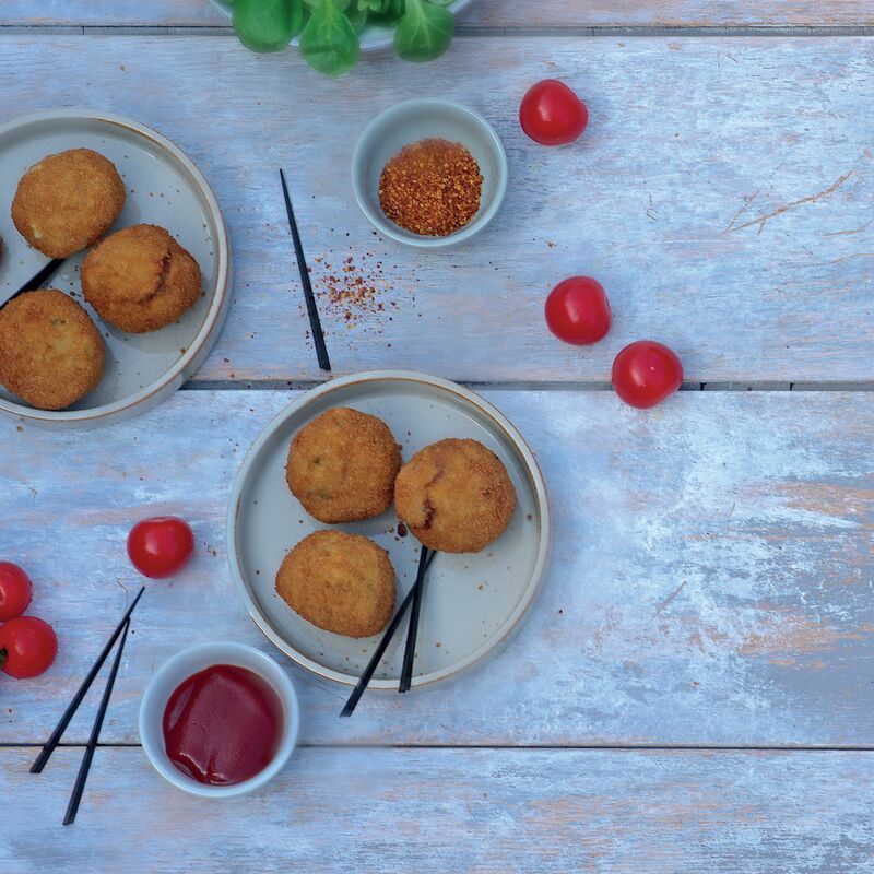 Boulettes de Veau du Limousin au piment d’Espelette, Rocamadour et salade mâche